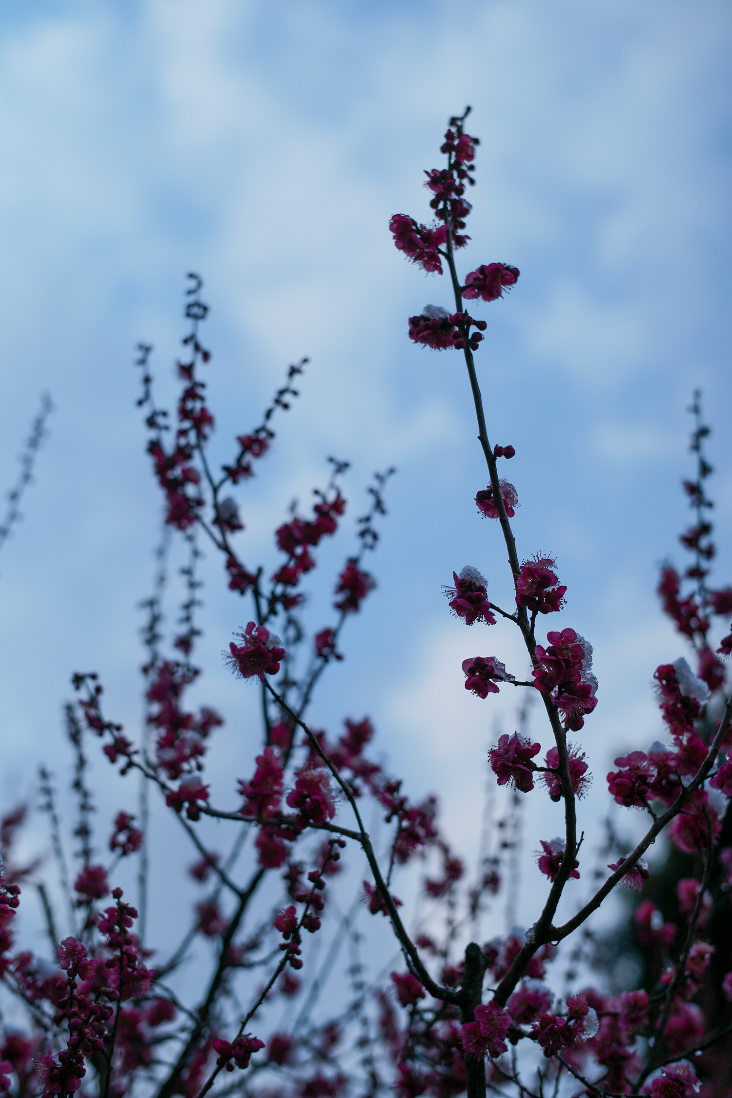 三月の末、季節外れの雪が降った早朝の撮影です。